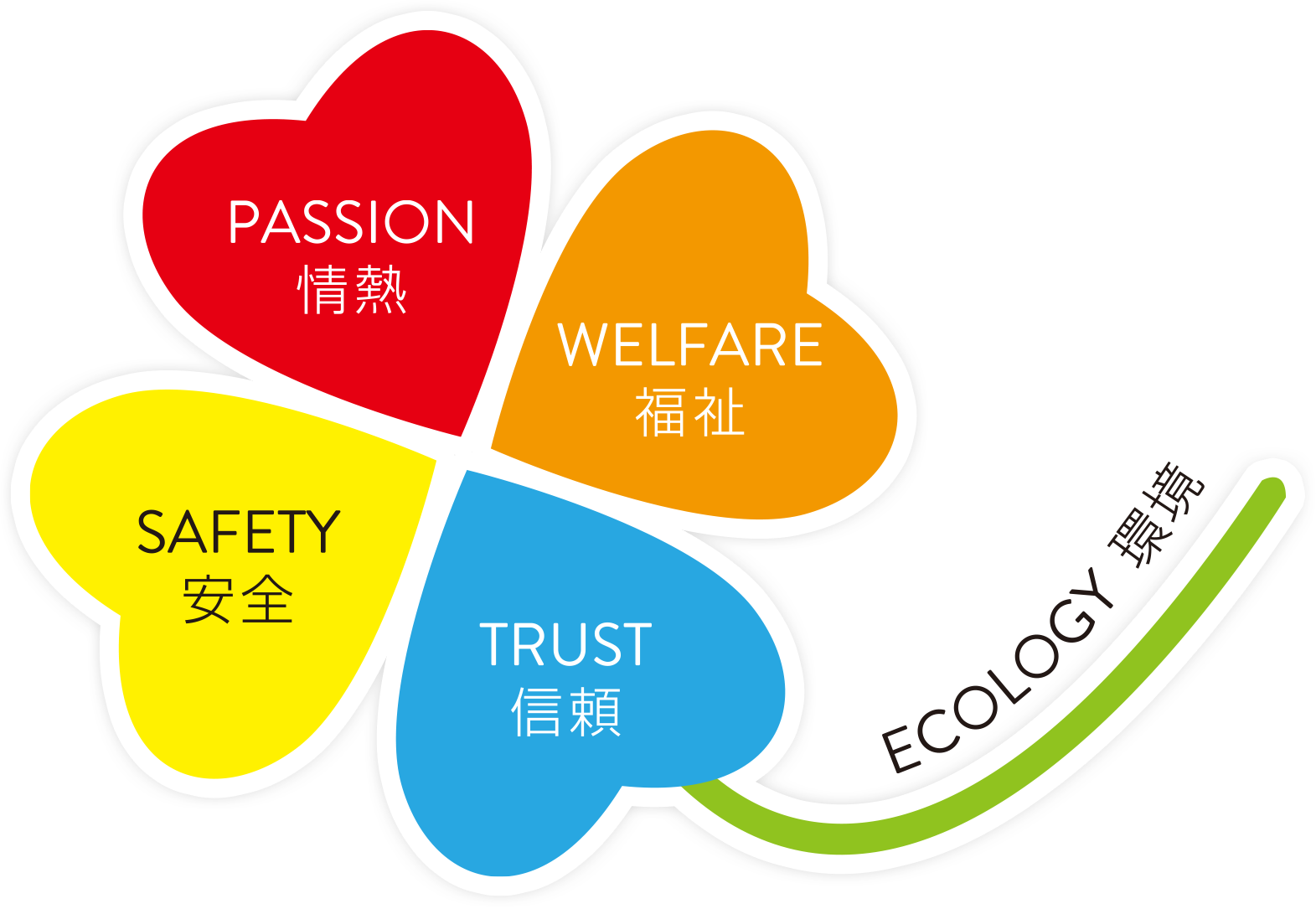 「信頼」「安全」「情熱」「福祉」「環境」を軸に